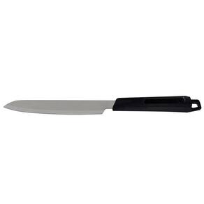 INFORMAÇÕES GERAIS DA FACA TRINCHANTE TRAMONTINA COM LÂMINA EM AÇO INOX E CABO DE POLIPROPILENO PRETO - Lâmina de aço inox com maior durabilidade do fio devido ao tratamento térmico. - Cabo de polipropileno com maior resistência e durabilidade.
