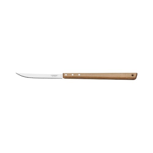 Faca Trinchante Tramontina com Lâmina em Aço Inox e Cabo de Madeira 8 " Para proporcionar o melhor para seu churrasco, trazemos a Faca Trinchante Tramontina com Lâmina em Aço Inox e Cabo de Madeira 8 Polegadas. Ideal para ser utilizada na hora de servir ou lidar com a carne assada, é produzida em aço inox e conta com fio serrilhado que a torna uma faca extramamente resistente. Possui cabo longo de madeira, que facilita o manuseio e o torna mais seguro. Bonita e prática, garante muito mais facilidade na hora de servir um belo e suculento churrasco! Informações Gerais A lâmina de aço inox têm maior durabilidade do fio devido ao tratamento térmico. Cabo de madeira natural. Rebites de alumínio.