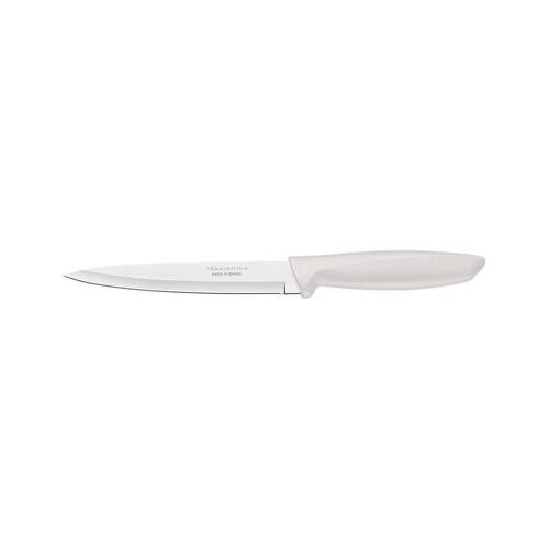 Faca Utility Tramontina Plenus Com Lâmina Em Aço Inox E Cabo De Polipropileno Off White 6" Tramontina Faca Utility Tramontina Plenus com Lâmina em Aço Inox e Cabo de Polipropileno Off White 6 Tramontina - A Faca Utility Tramontina Plenus com Lâmina em Aço Inox e Cabo de Polipropileno Off White 6 Polegadas da Linha Plenus vai ser sua melhor amiga na cozinha. A lâmina com ponta em formato de espada auxilia você na perfuração e abertura de diferentes alimentos. E pode ser usada para cortar carnes, frutas e vegetais. Além disso, trazendo qualidade e resistência, a lâmina é produzida em aço inox e possui 6 polegadas. O cabo em polipropileno na cor off white também garante conforto e qualidade no dia a dia. Linha Tramontina Plenus: pensada para deixar seus momentos na cozinha incríveis!OrientaçõesCom ponta em formato de espada, auxilia na abertura e na perfuração dos alimentos. A lâmina de aço inox têm maior durabilidade do fio devido ao tratamento térmico. O cabo de polipropileno possui maior resistência e durabilidade. Pode ir à máquina de lavar louças facilitando seu dia a dia.ObservaçõesAntes da primeira utilização, lave bem a peça e seque-a. Produto cortante e perfurante: tenha cuidado ao manusear e mantenha fora do alcance das crianças. Para maior durabilidade do produto recomenda-se secar bem antes de guardar, mesmo após lavagem em máquina. Recomenda-se o uso de tábuas de polipropileno ou madeira da Tramontina para maior durabilidade do fio da faca. Não é indicado o uso da faca para o corte de alimentos congelados. Mantenha sempre sua faca afiada utilizando os afiadores da Tramontina. Para descarte dos produtos e embalagens siga as orientações de reciclagem vigentes.Características GeraisEAN137891112226067DUN1417891112226064NCM8211.92.10Peso Líquido0,0650 kg.Peso Bruto0,0800 kg.Metragem0,000460 m.Dimensões Embalagem (Compr. X Larg. X Alt.)22x 61x 343 mm.Dimensões Produto (Compr. X Larg. X Alt.)284x 34x 18 mm.Cor 1D9D9D6 Hexa Características Gerais do Produto: Garantia: - 1 Ano