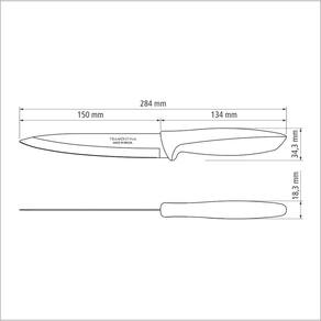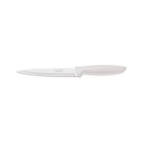 A Faca Utility Tramontina Plenus com Lâmina em Aço Inox e Cabo de Polipropileno Off White 6 Polegadas da Linha Plenus vai ser sua melhor amiga na cozinha. A lâmina com ponta em formato de espada auxilia você na perfuração e abertura de diferentes alimentos. E pode ser usada para cortar carnes, frutas e vegetais. Além disso, trazendo qualidade e resistência, a lâmina é produzida em aço inox e possui 6 polegadas. O cabo em polipropileno na cor off white também garante conforto e qualidade no dia a dia. Linha Tramontina Plenus: pensada para deixar seus momentos na cozinha incríveis! Orientações Com ponta em formato de espada, auxilia na abertura e na perfuração dos alimentos.A lâmina de aço inox têm maior durabilidade do fio devido ao tratamento térmico. O cabo de polipropileno possui maior resistência e durabilidade. Pode ir à máquina de lavar louças facilitando seu dia a dia. Observações Antes da primeira utilização, lave bem a peça e seque-a. Produto cortante e perfurante: tenha cuidado ao manusear e mantenha fora do alcance das crianças. Para maior durabilidade do produto recomenda-se secar bem antes de guardar, mesmo após lavagem em máquina. Recomenda-se o uso de tábuas de polipropileno ou madeira da Tramontina para maior durabilidade do fio da faca. Não é indicado o uso da faca para o corte de alimentos congelados. Mantenha sempre sua faca afiada utilizando os afiadores da Tramontina.Para descarte dos produtos e embalagens siga as orientações de reciclagem vigentes. Características Gerais EAN13 7891112226067 DUN14 17891112226064 NCM 8211.92.10 Peso Líquido 0,0650 kg. Peso Bruto 0,0800 kg. Metragem 0,000460 m³. Dimensões Embalagem (Compr. X Larg. X Alt.) 22x 61x 343 mm. Dimensões Produto (Compr. X Larg. X Alt.) 284x 34x 18 mm. Cor 1 D9D9D6 Hexa