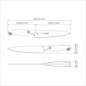 Lâmina e cabo de aço inox que mantém suas características garantindo durabilidade e higiene. A lâmina de aço inox têm maior durabilidade do fio devido ao tratamento térmico. Pode ir à máquina de lavar louças facilitando seu dia a dia.