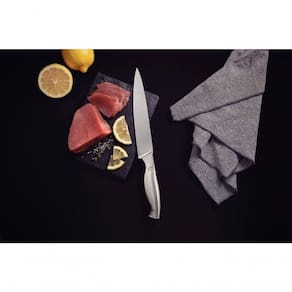 Se você quer elevar o nível da sua cozinha, a Faca Utility Tramontina Sublime em Aço Inox 8 polegadas é a escolha perfeita! Com uma pega robusta, confortável e ergonômica, ela tem lâmina com tratamento térmico e possui design exclusivo - ambos projetados para proporcionar o prazer de cozinhar com , facilidade e precisão. A faca ainda pode ir à máquina de lavar louças, o que facilita ainda mais o seu dia a dia na cozinha. Sem dúvida, uma faca essencial para quem não abre mão do melhor na cozinha!