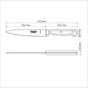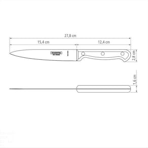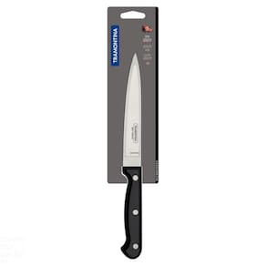A Faca Utility Tramontina Ultracorte com Lâmina em Aço Inox e Cabo de Polipropileno Preto 6 Polegadas é perfeita para o que você precisar na cozinha. Produzida com cabo em polipropileno na cor preta, possui proteção antimicrobiana, que inibe a ação de bactérias de fungos. As lâminas de aço inox de 6 polegadas recebem tratamento térmico, dando mais durabilidade. Fácil de lavar e confortável no uso, pode ser levada à máquina de lavar louças. Ideal para cortar carnes, frutas e vegetais, é um produto essencial para você preparar suas melhores receitas. Orientações Com ponta em formato de espada, auxilia na abertura e na perfuração dos alimentos.A lâmina de aço inox têm maior durabilidade do fio devido ao tratamento térmico. O cabo de polipropileno possui maior resistência e durabilidade. E conta com proteção antimicrobiana, que inibe e reduz o crescimento de bactérias e fungos proporcionando benefícios em higiene e redução de microorganismos que causam contaminação. Esta ação dura por toda a vida útil dos produtos, mas não elimina a necessidade de limpeza.Rebites de alumínio.Pode ir à máquina de lavar louças facilitando seu dia a dia. Características Gerais EAN13 7891112068230 DUN14 17891112068237 NCM 8211.92.10 Peso Líquido 0,0700 kg. Peso Bruto 0,0800 kg. Metragem 0,000381 m³. Dimensões Embalagem (Compr. X Larg. X Alt.) 70x 16x 340 mm. Dimensões Produto (Compr. X Larg. X Alt.) 278x 28x 16 mm. Cor 1 000000 Hexa Observações Antes da primeira utilização, lave bem a peça e seque-a. Produto cortante e perfurante: tenha cuidado ao manusear e mantenha fora do alcance das crianças. Para maior durabilidade do produto recomenda-se secar bem antes de guardar, mesmo após lavagem em máquina. Recomenda-se o uso de tábuas de polipropileno ou madeira da Tramontina para maior durabilidade do fio da faca. Não é indicado o uso da faca para o corte de alimentos congelados. Mantenha sempre sua faca afiada utilizando os afiadores da Tramontina.Para descarte dos produtos e embalagens siga as orientações de reciclagem vigentes.