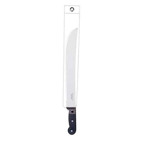 Facão para mato. Orientações 1. Lâmina com maior durabilidade do fio devido ao tratamento térmico.2. A lâmina recebe um acabamento lixado com um revestimento em verniz, que lhe confere uma maior resistência.3. Cabo de polipropileno com mais resistência e durabilidade. Observações Uso seguro e adequado:Tenha cuidado ao manusear produtos cortantes e perfurantes e mantenha-os fora do alcance de crianças. Para garantir a durabilidade dos produtos, recomenda-se secá-los bem após a lavagem. Características Gerais EAN13 7891112003712 DUN14 17891112003719 NCM 8201.40.00 Peso Líquido 0,3000 kg. Peso Bruto 0,3100 kg. Metragem 0,000635 m³. Dimensões Embalagem (Compr. X Larg. X Alt.) 21x 63x 480 mm. Dimensões Produto (Compr. X Larg. X Alt.) 26x 105x 607 mm. Espessura 2,0 mm. Cor 1 000000 Hexa