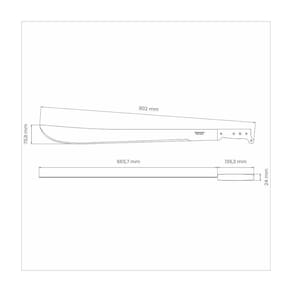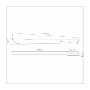 Lâmina de aço carbono com tratamento térmico especial que proporciona maior dureza, resistência do fio e maior poder de corte. Lamina com aplicação de uma camada de verniz como revestimento protetivo, a qual possui a função de proteção durante as etapas de transporte, armazenamento e primeiros usos. Cabo de polipropileno rebitado que garante maior segurança, ergonomia perfeita e conforto no manuseio. Rebites de alumínio.