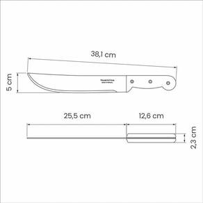 - Lâmina de aço carbono com tratamento térmico especial que proporciona maior dureza, resistência do fio e maior poder de corte;