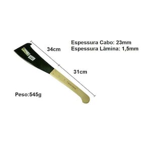 Descrição - facão para cana lamina peito de pomba - marca: duas caras - tamanho da lamina: 340 mm - espessura da lâmina: 1,5 mm - comprimento total: 650 mm - tamanho do cabo: 310 mm - com cabo de madeira - produto de alta qualidade - produto pré afiado - material: aço e madeira Ean: 7702956026631