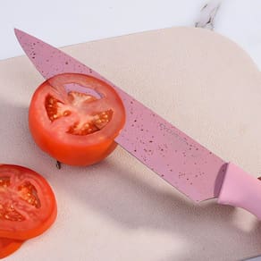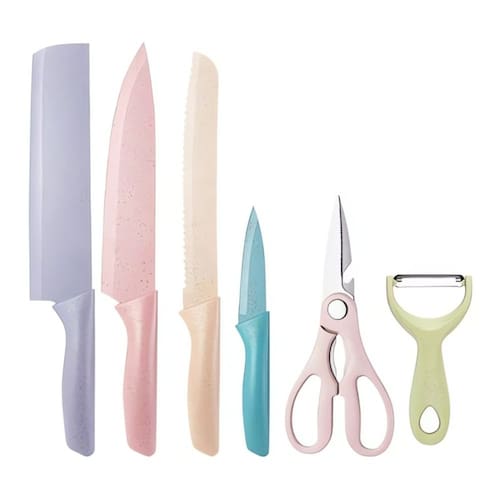 Jogo de Facas Coloridas com Tesoura em Aço Inox, ideal para chefs e cozinheiros amadores que buscam qualidade e estilo. Com lâminas afiadas e cores modernas, este conjunto de 6 peças oferece cortes precisos para diferentes tipos de alimentos.