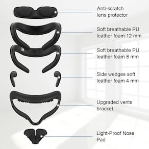 AMVR Suporte de interface suave para ventilação facial VR resistente e antivazamento leve de espuma de couro PU almofada de substituição acessórios confortáveis personalizados conjunto de 7 peças para Meta Quest 2 (branco, 7 em 1) (preto) - , - - – A AMVR tem uma equipe profissional de compras e Qc, as almofadas faciais para oculus quest 2 são todas feitas de couro PU amigo da pele e espuma de esponja de qualidade premium, é mais macia, confortável e à prova de suor - O suporte de interface facial atualizado não apenas adota uma estrutura de ventilação que é mais em consonância com o princípio circulação de ar, mantém seu rosto fresco e alivia o embaçamento das lentes em jogos de realidade virtual, mas também o design ergonômico se ajusta bem ao seu rosto, não se preocupe mais com o vazamento de luz - Nossos inúmeros testes provaram que quando a espessura da esponja atinge 8 mm, ela pode aliviar a pressão no rosto e dar às pessoas melhor conforto. O protetor facial AMVR é definitivamente o mais próximo que você pode chegar da lente sem que seus cílios comecem a comprimir, dando a você mais FOV e melhorando sua imersão em realidade virtual - – Há sempre uma escolha que lhe dá o melhor FOV ao mesmo tempo, também lhe dá o melhor conforto. A almofada facial é projetada com orifícios de ventilação, tornando-a mais respirável do que outras - A almofada nasal evita vazamentos de luz durante o uso e proporciona uma melhor experiência de jogo. A capa de lente personalizada é feita de EVA de alta densidade, protegendo os óculos Quest 2 de arranhões, sujeira e poeira - 7--1 18- - - Almofada de rosto de 12 mm * 1, almofada de rosto de 8 mm * 1, almofada facial com cunhas laterais de 4 mm * 2, suporte de interface, 1 almofada de nariz atualizada * 1 e protetor de lente* 1, 1 conjunto atende a todas as suas necessidades. Se você tiver alguma dúvida sobre nossos produtos e serviços, , definitivamente lhe daremos uma solução satisfatória a tempo