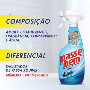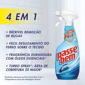 Facilitador Para Passar Roupa Passe Bem 4 Em 1 Com Borrifador 500ml Passe Bem O Facilitador para Passar Roupa Passe Bem 4 em 1 é a solução perfeita para quem busca agilidade e eficiência na hora de cuidar das roupas. Com 500 ml de produto em um prático borrifador, ele oferece quatro funcionalidades em um só frasco: facilita o deslizar do ferro, ajuda a eliminar rugas, deixa as peças com um toque macio e proporciona um aroma agradável. sua fórmula inovadora é ideal para todos os tipos de tecidos, tornando o processo de passar roupa muito mais simples e rápido. Basta borrifar o produto na peça desejada antes de passar e perceber a diferença no deslizamento do ferro, que se torna mais suave e eficaz. O resultado é um acabamento impecável, sem esforço. Além disso, o Facilitador Passe Bem 4 em 1 ajuda a prolongar a durabilidade das roupas, mantendo-as em melhores condições por mais tempo. O uso do borrifador permite uma aplicação precisa, evitando excessos e garantindo que cada peça receba a quantidade ideal do produto.