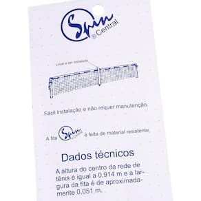 Descrição da Faixa Central Spin Ajustável A Faixa Central Spin Ajustável é reforçada, de fácil instalação e não requer manutenção, vem com fivelas de plástico resistentes reguláveis facilitando o ajuste da altura central da rede, mantendo assim, sua rede firme e sempre disposta para uso em quadra durante suas partidas, acompanhada com uma fita métrica para ajuste com base aos postes. Conheça as Características da Faixa Central Spin Ajustável - Perfil: Ideal para rede de tênis; - Detalhamento: Faixa branca para rede de tênis com mosquetão, matéria prima virgem de alta densidade, feito em laboratório para aumentar o tempo de uso; - Dados Técnicos: A Altura do centro da rede de tênis é igual a 0,914m e a largura da fita é de aproximadamente 0,051m; - Origem: Nacional.