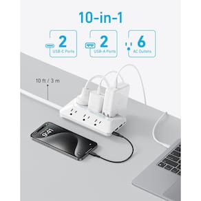 - Hub de alimentação 10 em 1: equipe-se com 6 tomadas AC, 2 portas USB-A e 2 portas USB-C para multitarefa eficiente e carregamento rápido.