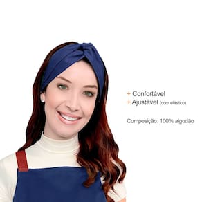 Faixa de Cabelo Turbante Bandana Azul Marinho Chef Cozinha