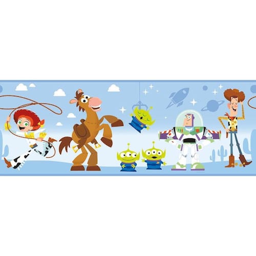 Para decorações coloridas e cheias de alegrias de quartos utilize a faixa de parede do Toy Story da coleção Disney York III.
