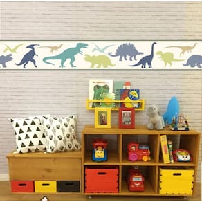 Faixa Decorativa Adesivo Border Quarto Infantil Dinossauros Quer montar um quartinho pro seu baby, e não sabe como? Aqui está a solução, nossas faixas adesivas decorativas são simples e fáceis de aplicar e o melhor de tudo não faz sujeira! Tamanho: - altura: 15 centímetros - comprimento: 1 metro. Onde posso aplicar - pode ser aplicado em qualquer superfície lisa como paredes, madeiras, mdf, vidros, metais, gesso, azulejos, móveis, porta, etc. - não aplicar em superfícies úmidas, porosas, texturizadas ou com relevo. Marca: Artetik Digital
