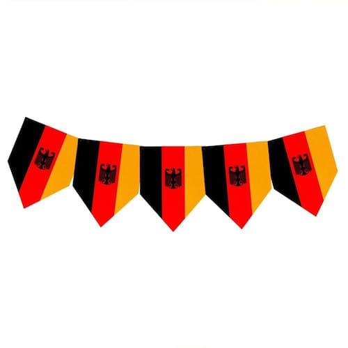 Combine a Faixa Decorativa Bandeirinhas Alemanha da Neotrentina com outros itens de decoração inspirados na Alemanha, como copos, pratos, toalhas e objetos temáticos para criar uma atmosfera ainda mais envolvente. Pendure a faixa em locais estratégicos para garantir que ela se destaque na decoração.