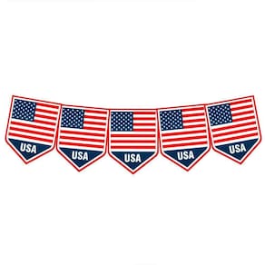 Conteúdo: 10 Bandeirinhas Estados Unidos estampada e um cordão