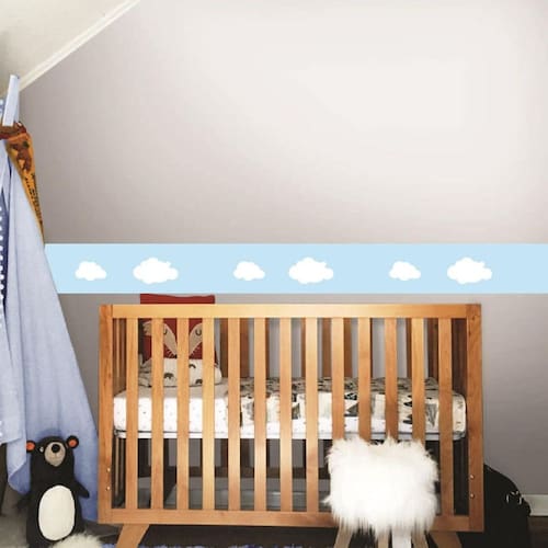Faixa decorativa quarto bebê infantil nuvens azul 6m Casa nova sem reforma kit com 6 rolos de faixa 15cm x 100cm cada Paredes lindas e decoradas sem dores de cabeça
