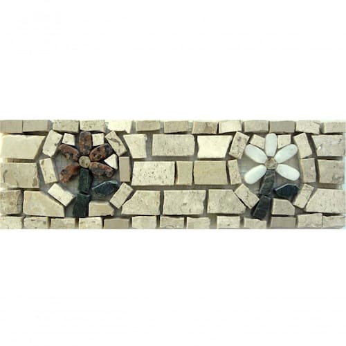 Especificações técnicas do mosaico: Feito com pedras - Mármores e granitos de todo o Brasil e importados da Europa e Ásia - para obter todas as cores desejadas em pedras naturais; Vem todo montado sobre tela, só colocar conforme manual de colocação, Resistência e Durabilidade em área interna e externa; Espessura de 10 mm Mesma espessura do porcelanato ou piso cerâmico Liso e agradável para uso diário; Mosaico feito integralmente à mão com técnica do mosaico romano;
