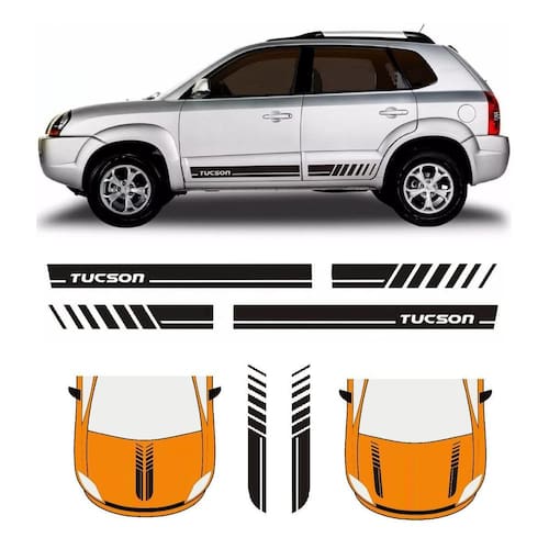 Faixa Lateral Para Tucson Adesivo Ts3 E Capô C2 Preto Produto SRT Wolf 1 Kit adesivo com quatro 4 peças Dois 2 adesivos lateral modelo TS3 Dois 2 adesivos de Capô modelo C2