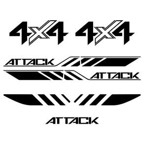 Par de Faixas Laterais Attack Fabricado em Vinil automotivo Dimensões: 171,2 x 12,2 cm Par de Adesivos 4x4 Fabricado em Vinil Automotivo Dimensões: 40 x 17,2 cm Par de Faixas do Capô Fabricado em Vinil Automotivo Dimensões: 75 x 12,5 cm Adesivos Traseira Fabricado em Vinil Automotivo Dimensões: 47 x 5,1 cmQuantidade: 1 Jogo Completo de Faixas para a Frontier Attack 4x4 2023