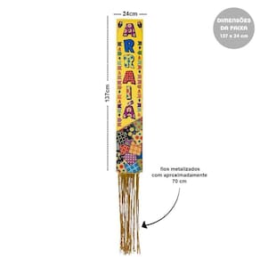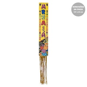 Faixa vertical decoração junina amarela com fita metalizada você já pensou em deixar sua festa mais bonita, colorida e alegre Com os itens de decoração reiono das festas, é possível capriche na decoração de festa junina, chame muita atenção com essa faixa decorativa características: - marca: reino das festas; - tamanho cm : 137a x 24l; - franja: 70 cm; - composição: papel cartonado; - referência: 892; -imagens meramente ilustrativas- atenção: a cor do produto pode variar de acordo com o monitor atenção: o fabricante pode alterar a cor de alguma parte do produto sem aviso prévio.