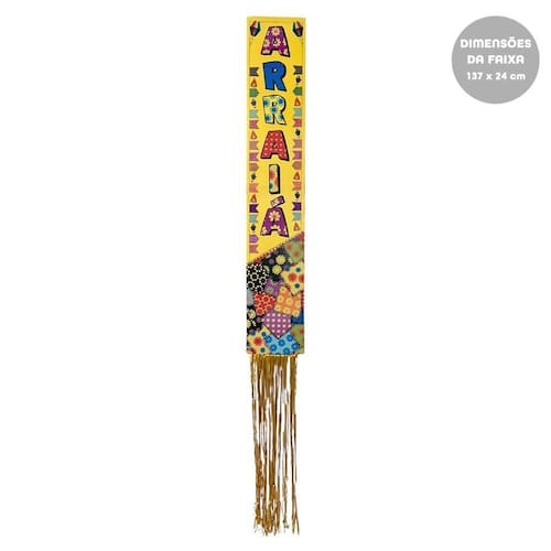 Faixa vertical decoração junina amarela com fita metalizada você já pensou em deixar sua festa mais bonita, colorida e alegre Com os itens de decoração reiono das festas, é possível capriche na decoração de festa junina, chame muita atenção com essa faixa decorativa características: - marca: reino das festas; - tamanho cm : 137a x 24l; - franja: 70 cm; - composição: papel cartonado; - referência: 892; -imagens meramente ilustrativas- atenção: a cor do produto pode variar de acordo com o monitor atenção: o fabricante pode alterar a cor de alguma parte do produto sem aviso prévio. Marca: Não Informado