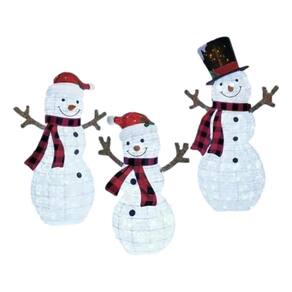 Família 3 Bonecos Neve Enfeite Natal 520 Luzes Led Importado