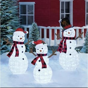 Esta adorável família de bonecos de neve traz alegria festiva aos transeuntes neste Natal. Esses bonitos bonecos de neve com sua construção única em estilo acordeão pop-up são rápidos e fáceis de montar e desmontar e são perfeitos para guardar no próximo ano.