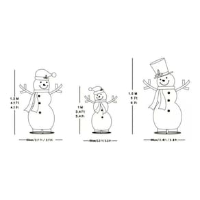 Dimensões Boneco de neve 1: A 150 x L 86 cm Boneco de neve 2: A 120 x L 83 cm Boneco de neve 3: A 100 x L 69 cm Dimensões da caixa: A 64,8 x L 34,9 x P 55,9 cm Peso 11 kg