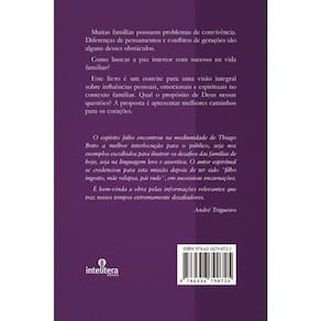 Muitas famílias possuem problemas de convivência. Diferenças de pensamentos e conflitos de gerações são alguns desses obstáculos. Como buscar a paz interior com sucesso na vida familiar? Este livro é um convite para uma visão integral sobre influências pessoais, emocionais e espirituais no contexto familiar. Qual o propósito de Deus nessas questões? A proposta é apresentar melhores caminhos para os corações. "O espírito Júlio encontrou na mediunidade de Thiago Brito a melhor interlocução para o público, seja nos exemplos escolhidos para ilustrar os desafios das famílias de hoje, seja na linguagem leve e assertiva. O autor espiritual se credenciou para esta missão depois de ter sido filho ingrato, mãe relapsa, pai rude , em sucessivas encarnações. É bem-vinda a obra pelas informações relevantes que traz nesses tempos extremamente desafiadores." André Trigueiro