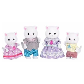 Uma fofa família de gatos persas. Uma família incrível com o Pai que adora dançar, a Mãe que ama as estrelas e as gêmeas que sempre foram próximas. Todos estão vestindo roupas xadrez de cores diferentes. Combine com o Bebê Gato persa, os Gêmeos Gatos Persa e os Trigêmeos Gatos Persa para uma brincadeira mais divertida com uma família de 10 pessoas (vendidas separadamente). Desfrute de brincadeiras ainda mais variadas com nossas casas e móveis! (vendido separadamente).