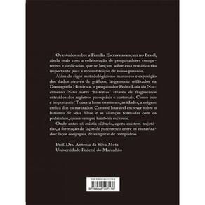 Esta obra nos conta um pouco da história dos escravos, com foco nas Famílias Escravas, trazendo à tona nomes, idades e a origem étnica dos escravizados. Os estudos sobre a Família Escrava avançam no Brasil, sobretudo com a colaboração de pesquisadores competentes e dedicados, que se lançam sobre essa temática tão importante para a reconstituição de nosso passado. Pedro Luiz do Nascimento Neto fez um estudo analítico e um profícuo diálogo com os demais historiadores da escravidão, especialmente da família escrava, com o objetivo de desenvolver uma análise comparativa de resultados entre diferentes regiões brasileiras. Onde antes só existia silêncio, agora existem trajetórias, a formação de laços de parentesco entre os escravizados: laços conjugais, de sangue e de compadrio.
