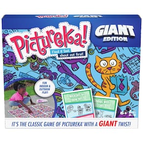 Spin Master Games, Pictureka. Edição gigante, jogo familiar para diversão interna e externa com tabuleiro grande, para família e crianças, 2 a 4 jogadores, a partir de 6 anos - Enorme e Extra Divertido: o clássico jogo de esconde-esconde visual ganha um grande toque gigante... jogue o clássico jogo Pictureka. Com um tapete extragrande e cartas gigantes. Para 2 a 4 jogadores, a partir de 6 anos. - Jogue dentro ou fora: seja verão ou inverno, você pode jogar Giant Pictureka. Onde você quiser. Este jogo para crianças grandes é perfeito para jogos de quintal ao ar livre. - Fácil de jogar: desenhe um desafio jumbo e escolha uma categoria para encontrar no tapete gigante. Encontre o que está no cartão rapidamente e aponte para ele primeiro. O último jogador a encontrá-lo coleciona a carta de desafio. O menor número de cartas coletadas ganha. - Noite de jogos em família: crie memórias com jogos de tabuleiro para crianças de 4 a 6 anos, jogos de tabuleiro para crianças de 6 a 8 anos e jogos de tabuleiro para crianças de 8 a 12 anos. Divirta-se ao ar livre com jogos de acampamento e jogos ao ar livre para adultos e família. - Brinquedos e jogos Spin Master: Procurando jogos infantis, jogos de quintal e jogos de cartas para adultos, crianças ou adolescentes? Compre tudo, desde noites de jogos em família, jogos de viagem, quebra-cabeças para adultos e jogos para a família. - Inclui: 1 tapete de plástico gigante de 81 cm x 81 cm, 30 cartas de desafio jumbo, instruções (sem garantia de versão em português) - Coberto pelo compromisso Spin Master Care. Veja abaixo os detalhes completos