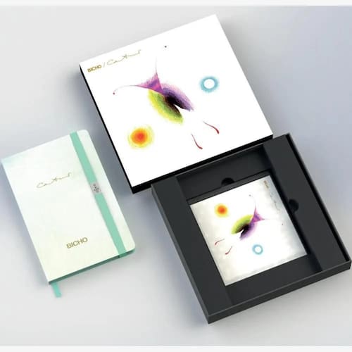 O Fan box contém: Caderneta capa dura Tampa da caixa vira quadro decorativo Parte inferior da caixa vira organizador