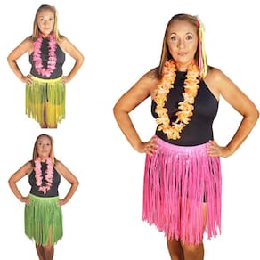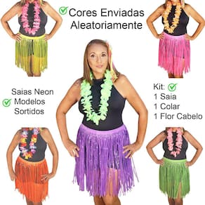 São 3 ítens Maravilhosos para sua Fantasia. Kit temático contendo: 1 saia modelo neon + 1 colar+ 1 arranjos de cabeça com flor.