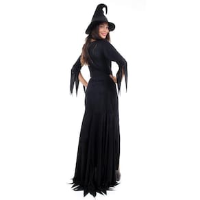 Chapéu de Bruxa Incluso: O traje é complementado por um icônico chapéu de bruxa, tornando-o completo e autêntico.