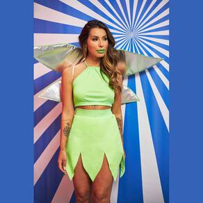 Fantasia Carnaval Fada Verde Feminino Conj. Top Saia C/ Asas