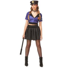 Fantasia Carnaval Policial Feminina com Cropped Saia e Cap