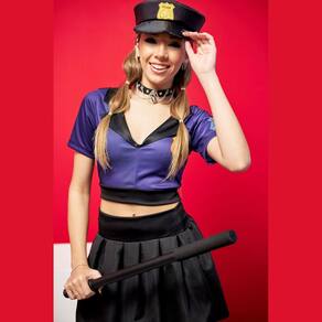 Fantasia Carnaval Policial Feminina – Cropped, Saia e Boné