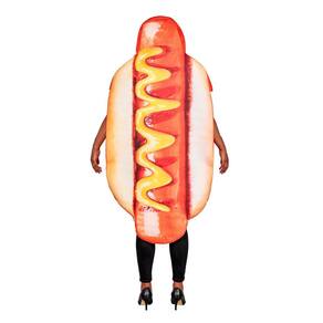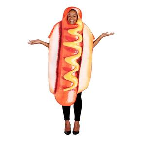 - O TRAJE INCLUI: túnica com estampa de cachorro-quente com orifício para a cabeça. Tamanho único para a maioria dos adultos.