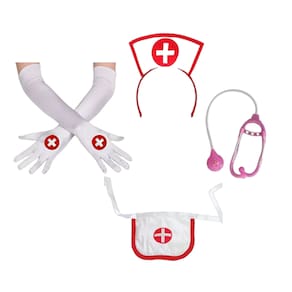 São 4 peças um conjunto de 01 Tiara, 01 Estetoscópio, 01 Par de Luvas e 01 Avental para compor sua fantasia com material de qualidade, acabamento puro, durável, leve e ecológico.