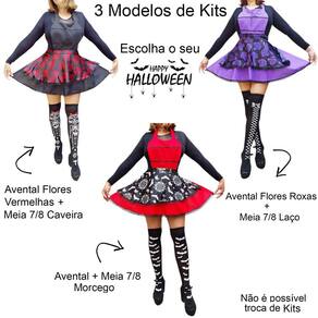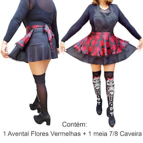 São três modelos de Kits: Avental com Rosas Vermelhas, Avental com Rosas Roxas e Avental com Morcegos. Todos os aventais acompanham meia 7/8 combinando. Escolha o seu preferido no campo variação de modelos.