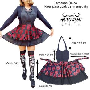 Contém: 1 Avental Temático Halloween conforme selecionado + 1 meia 7/8 combinando com o avental. Não é possível a inversão de kits.