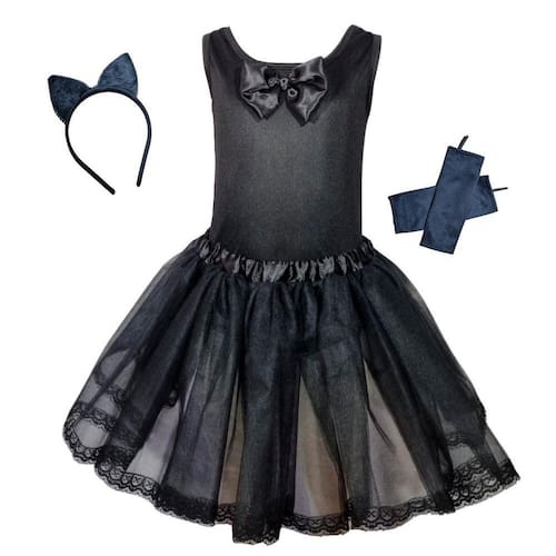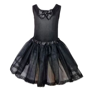Fantasia confeccionada em otima qualidade com collant em Helanca preta com laço aplicado e saia em Tule com fitas de cetim .