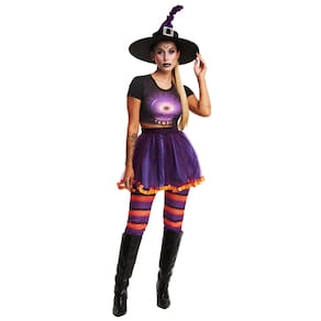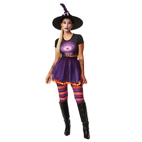 Para este modelo, a fantasia não acompanha o chápeu de bruxa, mas você ainda estará pronta para se tornar uma bruxa e espalhar a magia sombria no Halloween!