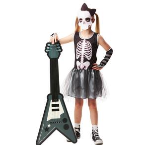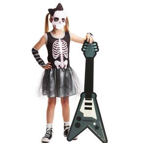Fantasia Halloween Caveira Rockstar Infantil Esquelet Menina
