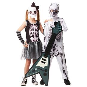 Prepare-se para uma noite cheia de estilo e atitude neste Halloween com a Fantasia Caveira Rockstar Infantil! Sua pequena esquelet rockeira estará pronta para arrasar e espalhar muito rock por onde passar!