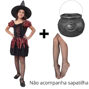 Contém: Vestido, chapéu, meia calça e caldeirão. NÃO ACOMPANHA DEMAIS ACESSÓRIOS