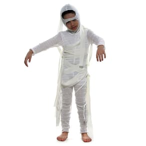 Efeito de Múmia Zumbi: Com as faixas pendentes e a touca com aberturas, seu filho estará pronto para personificar o terror de uma múmia zumbi assustadora.